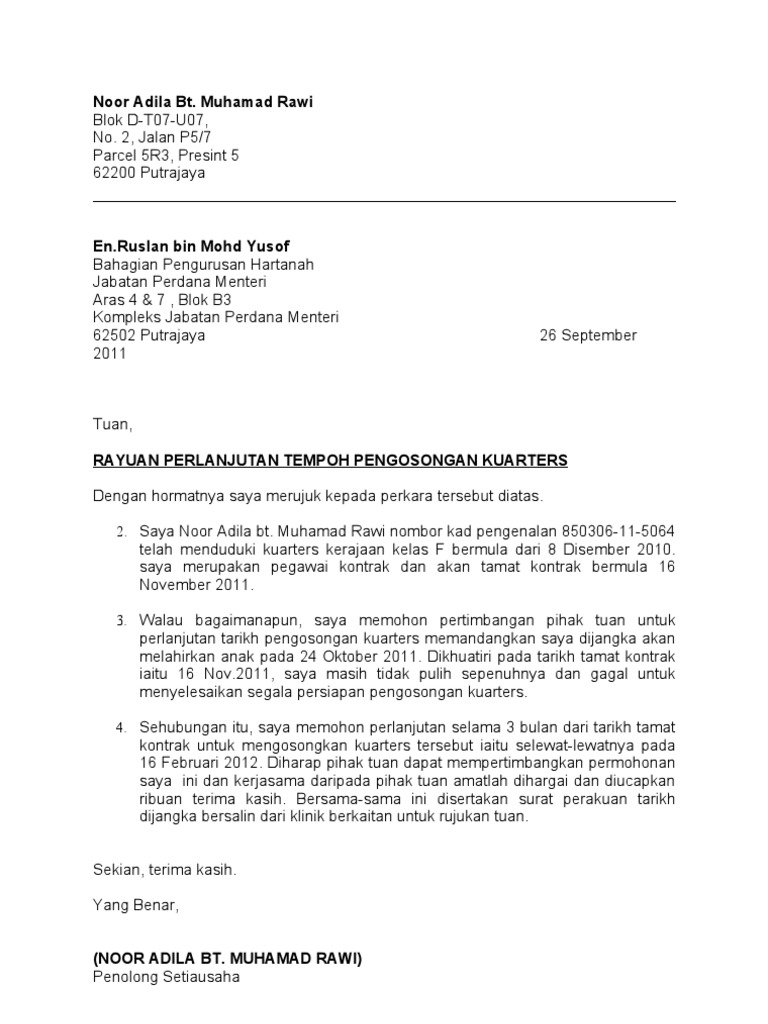 Contoh surat untuk perlanjutan tempoh percubaan bagi perjawat awam. Contoh Surat Permohonan Pengesahan Peraturan Perusahaan Lucas Wilkerson Usahakan untuk memeriksa kembali penulisan surat tersebut dan menyesuaikannya dengan kebutuhan. Lanjutan masa disebabkan cuaca buruk luar biasa blog jkr malaysia.